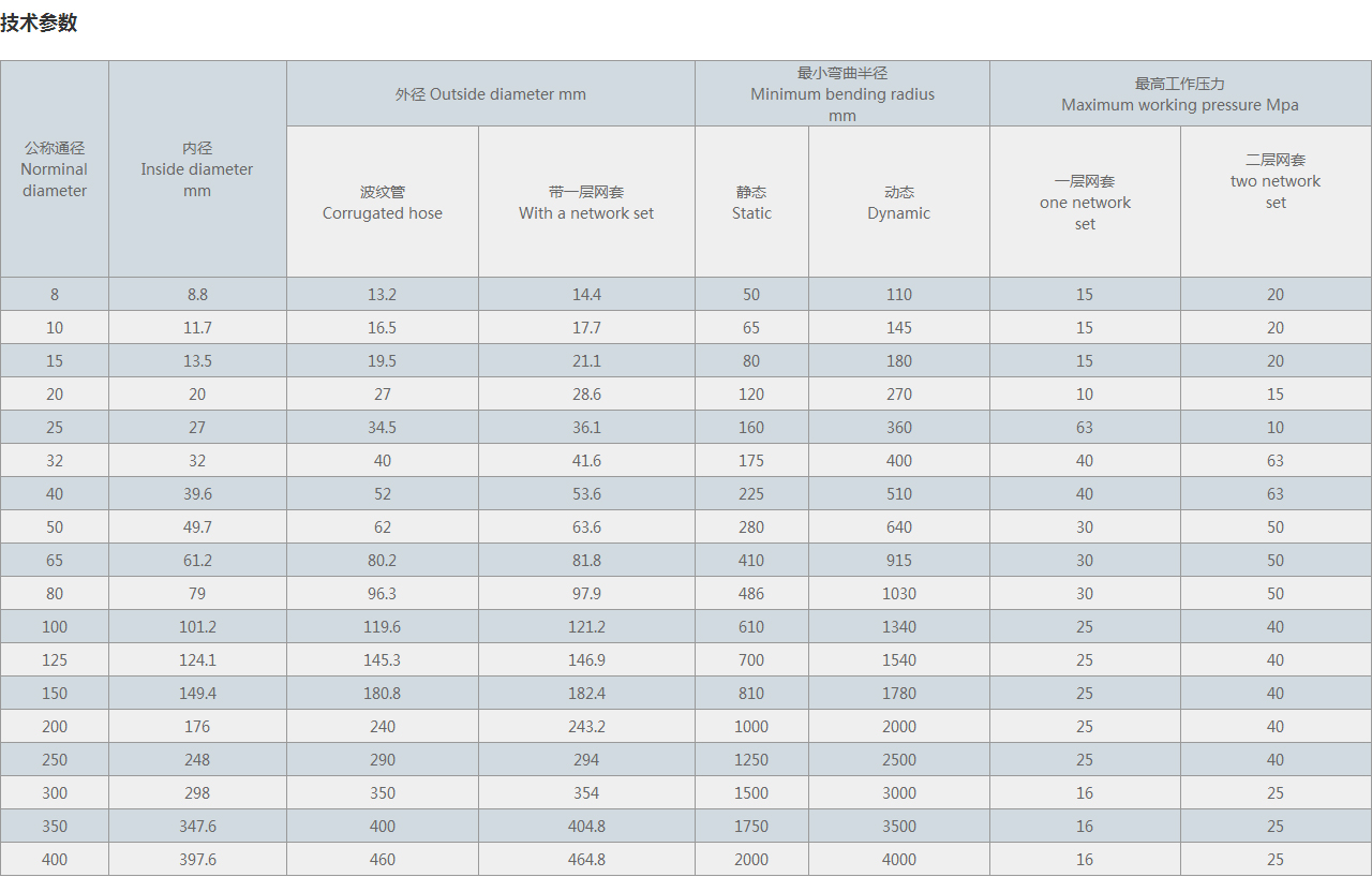 2.軟管管體為薄壁不銹鋼管體液壓成形,具有較強(qiáng)的柔韌性、伸縮性、彎曲和抗振能力強(qiáng)、編織網(wǎng)套的加強(qiáng)保護(hù)、使之具有更高的承壓能力。