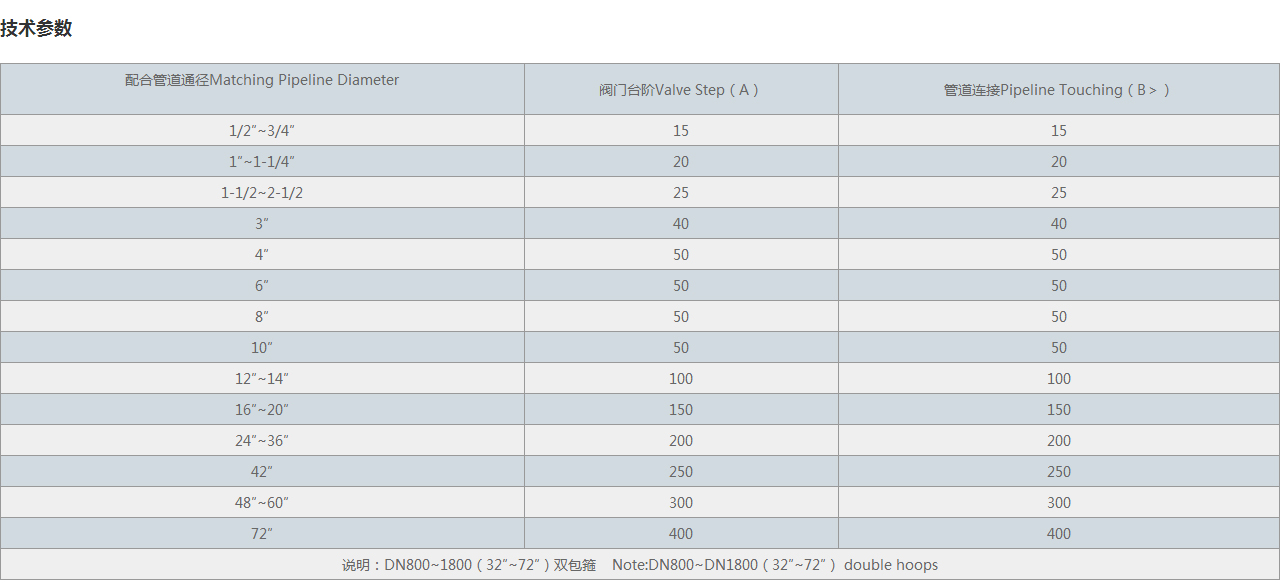 說明:DN800~1800(32″~72″)雙包箍    Note:DN800~DN1800(32″~72″) double hoops