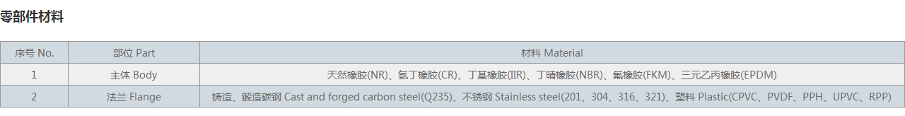 1 主體 Body 天然橡膠(NR)、氯丁橡膠(CR)、丁基橡膠(IIR)、丁晴橡膠(NBR)、氟橡膠(FKM)、三元乙丙橡膠(EPDM)