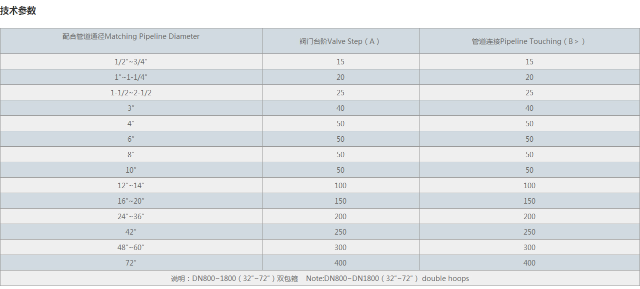 說明:DN800~1800(32″~72″)雙包箍    Note:DN800~DN1800(32″~72″) double hoops