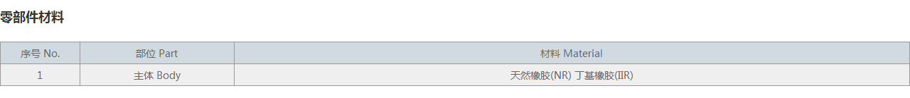 1 主體 Body 天然橡膠(NR) 丁基橡膠(IIR)