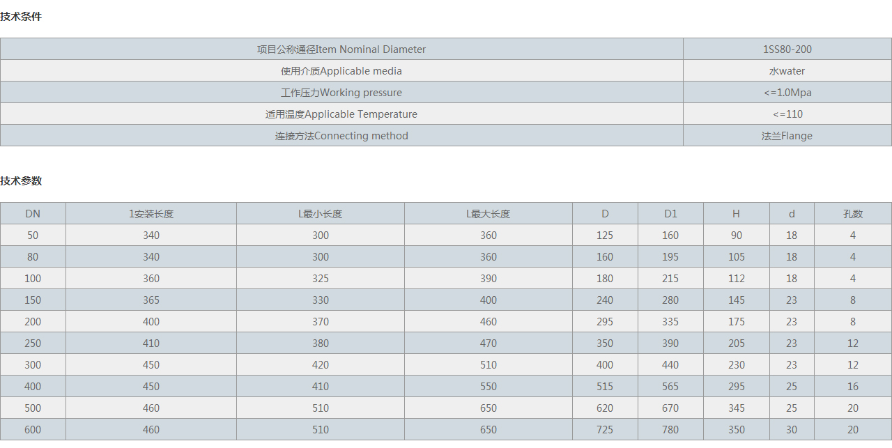 項(xiàng)目公稱通徑Item Nominal Diameter 1SS80-200