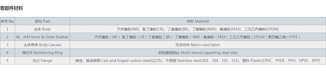 2 內(nèi)、外襯 Inner & Outer Rubber 天然橡膠(NR) 氯丁橡膠(CR)丁基橡膠(IIR) 丁腈橡膠(NBR)氟橡膠(FKM)三元乙丙橡膠(EPDM)聚四氟乙烯(PTFE)